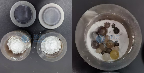 01、准备工作:行星式球磨仪jx-2g一台、玛瑙罐一套,研磨珠若干以及待研磨的氯化钠样本