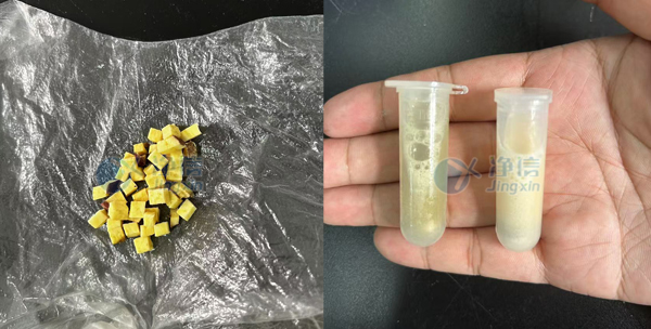 我们可以看到,番薯已经研磨完全,可以进行后续离心纯化。仪器自带冷冻,可以很好的保持rna活性。采用一次性,无菌无酶的的研磨管和研磨珠,冷冻研磨仪可以很好的避免样品污染,一批可以处理的样品多样,可以高效快速的进行批量rna提取。