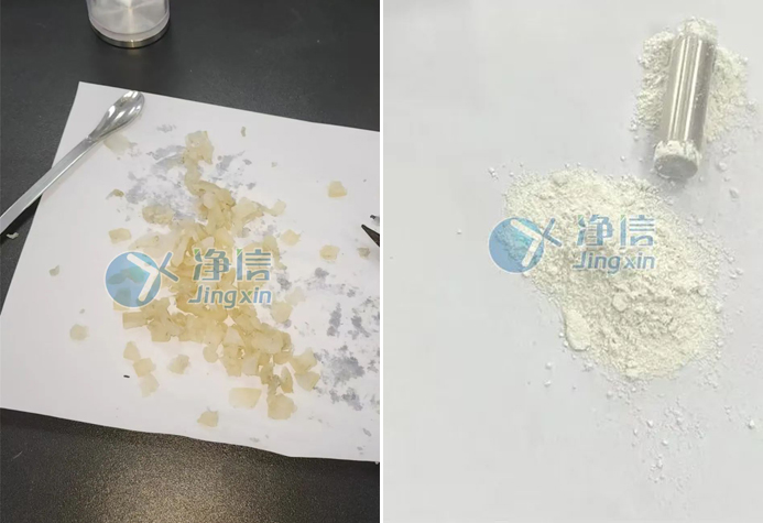 由上图我们可以看到,经全自动浸入式液氮冷冻研磨仪处理后,块状牛皮被研磨成细腻的粉末,达到预期要求,适合后续分析或加工。
