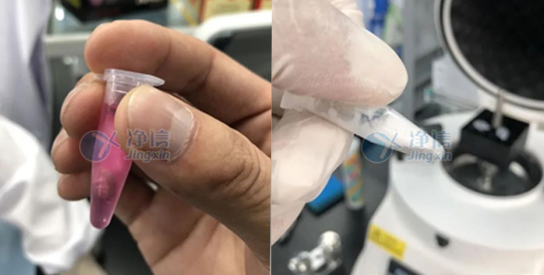 左为研磨前(加入提取试剂),右为研磨后(试剂已吸出)