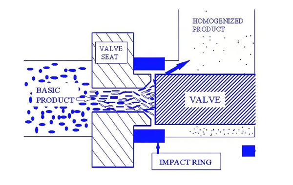 ① 剪切作用,均质阀座与阀芯间的缝隙很小,对物料颗粒产生剪切