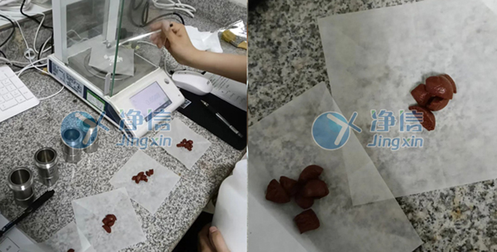 上图为上海净信全自动样品快速研磨仪对药丸60s的研磨效果,已经完全磨碎,达到实验预期效果。研磨样本50ml钢罐一次可以做 2 个样品,效率高,效果好,解决了实验中的研磨问题。