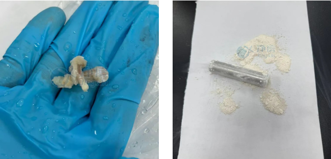 经全自动液氮冷冻研磨仪处理后的大鼠股骨,成功变为细腻粉末,无肉眼可见颗粒。后续检测完全符合实验要求。