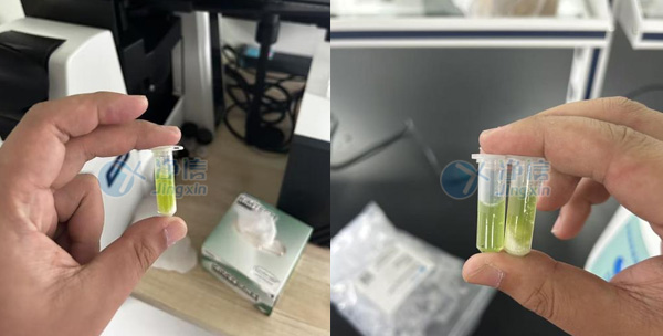 实验目的:本次实验对象为微藻,后续会做到核酸蛋白提取。作为微生物,且此类微藻细胞壁非常厚,研磨起来也是一个难点,要求研磨彻底,以便提高蛋白及核酸的浓度,涉及到蛋白、rna提取还需要低温研磨,之前用超声破碎长时间也无法破碎,因为样品本身是液体,所以温度也不能太低,否则冻住液体无法研磨,经过比较推荐,最终客户选择上海净信全自动样品快速组织研磨仪处理样品。