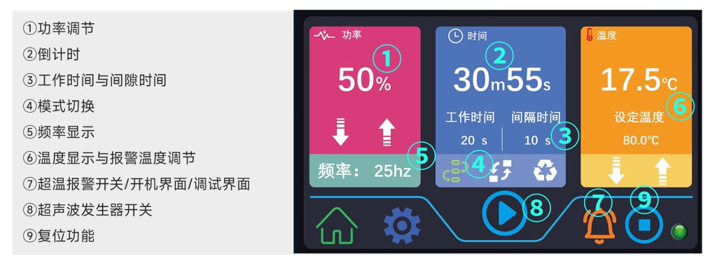 2.新的技术拥有更高的性能:新一代的超声发生器采用集成数字电路,它激式工作方式,具有自动追踪频率及自动功率补偿功能;经用户反馈超声运行稳定、超声功率输出均匀一致,实验重复性好。实验证明我们与传统超声相比,在连续超声、空载超声、间隙超声以及超声探头使用寿命上具有一定的优越性。